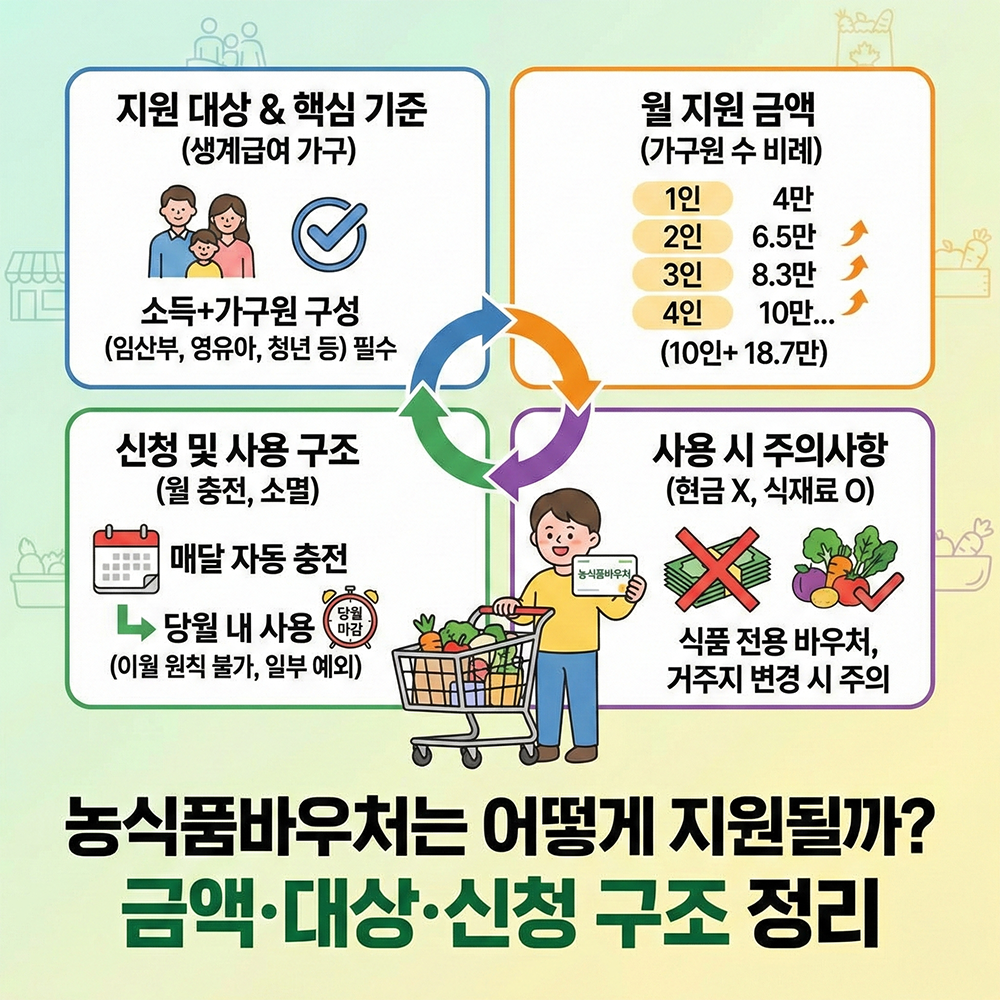 농식품바우처는 생활비 중 매일 반복되는 지출을 줄여주는 제도에 가깝습니다.