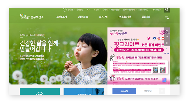 부산중구보건소 홈페이지에 접속하려면 검색사이트에서 "부산중구보건소"를 검색하거나 아래 링크를 통해 바로 접속할 수 있습니다.