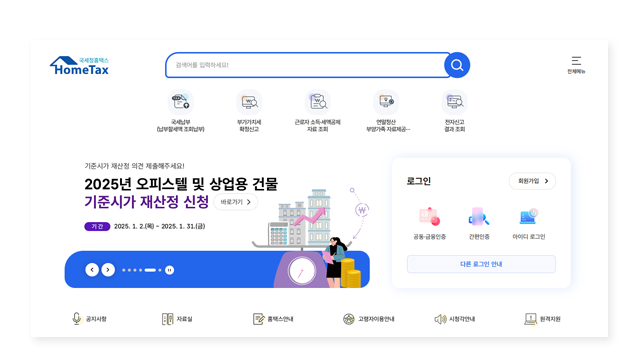 - 홈택스 접속 및 로그인: 국세청 홈택스에 접속하여 공인인증서 등으로 로그인합니다.