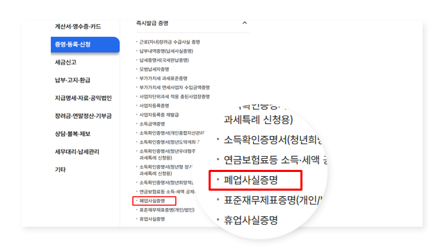 폐업사실증명원 온라인 발급