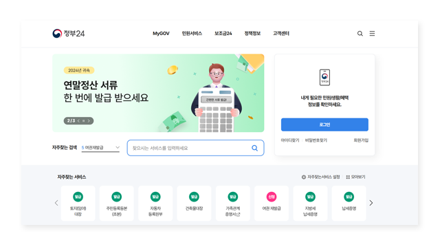 - 정부24 접속 및 로그인: 정부24에 접속하여 로그인합니다.