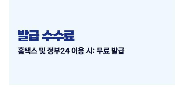 - 홈택스 및 정부24 이용 시: 무료 발급
