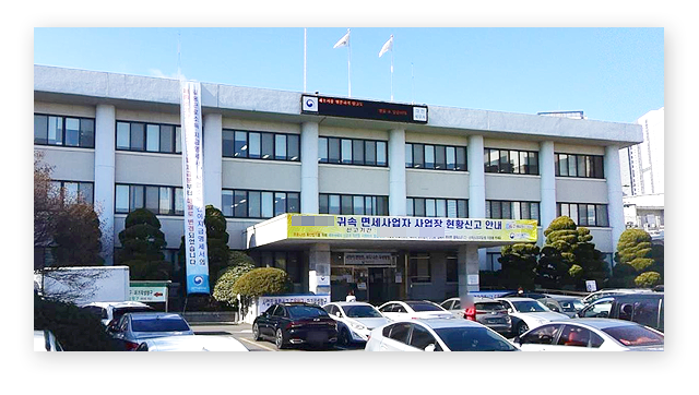 - 청사 전면에 민원인 전용주차장 (주차대수: 40대)