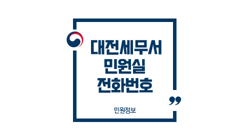 | 민원봉사실 (본서) | 042-229-8221~8229 | 042-253-4100 | 없음 | 사업자등록, 신고서 접수, 민원증명 업무 |