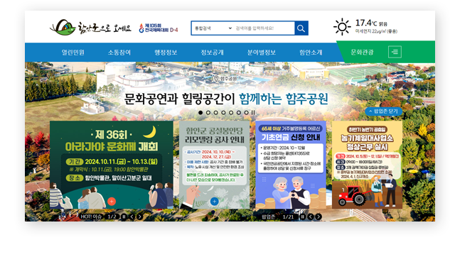 - 문화 행사 안내: 지역 문화 행사, 공연, 전시 등의 정보를 제공하며, 참여 신청을 할 수 있습니다.