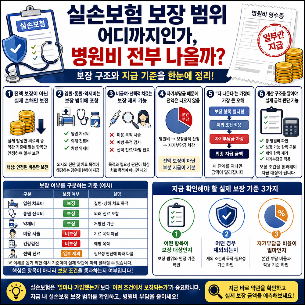 이 글은 실손보험 보장 범위 안에서 실제로 무엇이 지급되고, 어떤 경우에 실손보험 병원비가 줄어드는지 판단 기준을 알아보겠습니다.