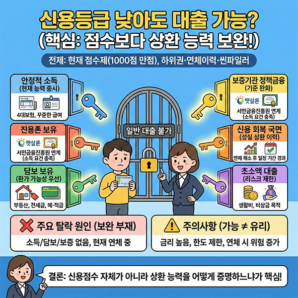 신용등급이 낮아도 대출이 가능한 경우는 분명 존재합니다. 다만 이는 예외가 아니라 ‘조건부 구조’에 가깝습니다.