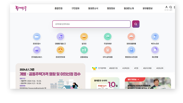 - 도시계획: 도시 개발, 재개발 등의 계획 및 정보를 제공합니다.