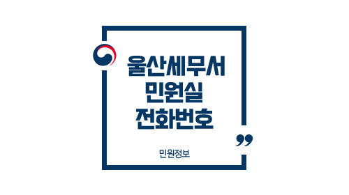 | 납세자보호 민원봉사실 | 052-259-0221~0229 | 052-273-2100 | 0503-116-9451 | 사업자등록신청, 정정신고, 휴폐업 신고 및 각종 민원증명 발급업무 |